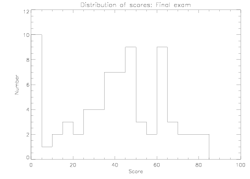 Distribution of scores for the final exam (2009 May 14)