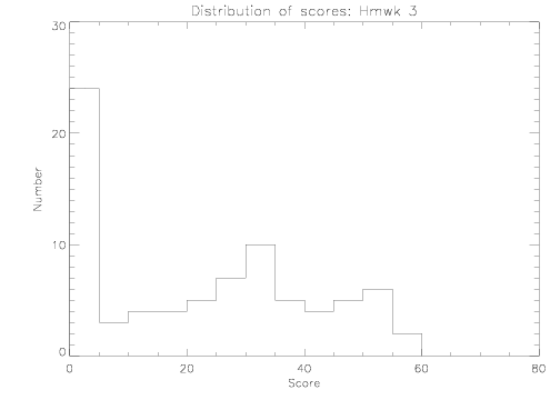 Distribution of scores for homework 3