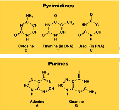 CHON, CHON, CHON, everywhere you look! The nucleic acid bases that you see here will be part of a monomer that we will string together with other monomers. Back Next Back to Lecture 11 outline Back to main lectures page Back to main course page
