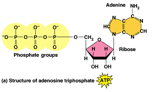 Energy is stored in a molecule called adenosine triphosphate (ATP).