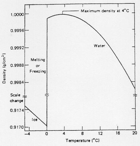 This also has the result of causing convection (overturning) in big bodies of water as extremely cold, less dense water overrides slightly warmer and denser water.