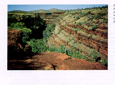 These are sedimentary rocks and the redness of the iron layers indicates that there was oxygen in the water. Oxygen (O2) was starting to appear in the atmosphere of the Earth.