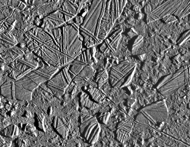 Ice rafts suggest that an ice layer might be quite thin and that icebergs are floating on a subsurface ocean layer.