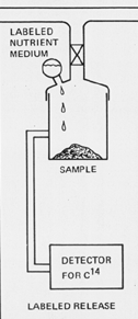"The LR experiment moistened a 0.5-cc sample of soil with 1 cc of a nutrient consisting of distilled water and organic compounds. The organic compounds had been labeled with radioactive carbon-14. After moistening, the sample would be allowed to incubate for at least 10 days, and any microorganisms would hopefully consume the nutrient and give off gases containing the carbon-14, which would then be detected. (Terrestrial organisms would give off CO2, carbon monoxide (CO), or methane (CH4).)"