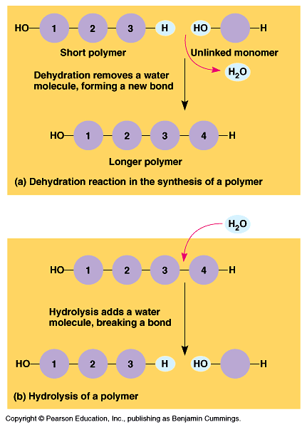 Polymers are assembled through dehydration reactions -- water is produced (taken away).